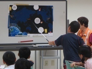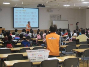 学年でグループに分かれて、館内にある、エコな物や事をみんなで探してもらいました。
