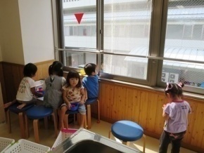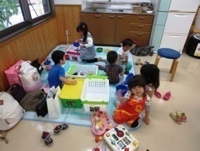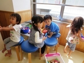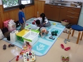 とても小さいお子さんたちが仲よく遊びながら待っている間に