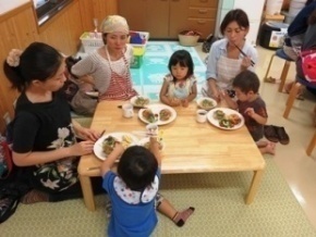 お母さんたちがどんどんおいしいランチをつくっていました。