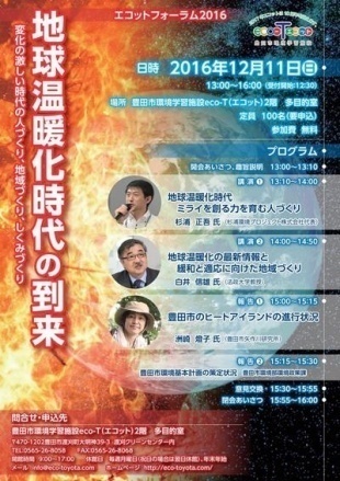 今年は、地球温暖化の最新情報と人づくり、地域づくり、しくみづくりをテーマに、実践型研究者に講演していただきます。
