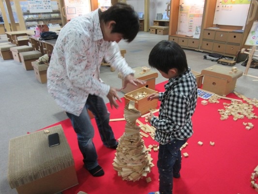 間伐材でできたトコ積み木であそび、木のぬくもりや大切さを感じます。