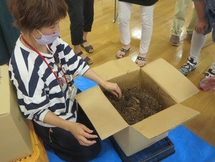 ダンボール箱を利用した、生ごみからの堆肥づくりを学びます。