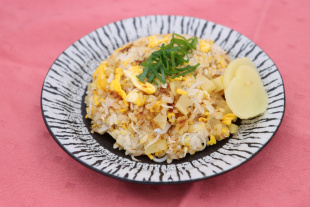オカカチャーハンとピーマンの肉詰め、野菜の皮のきんぴら、